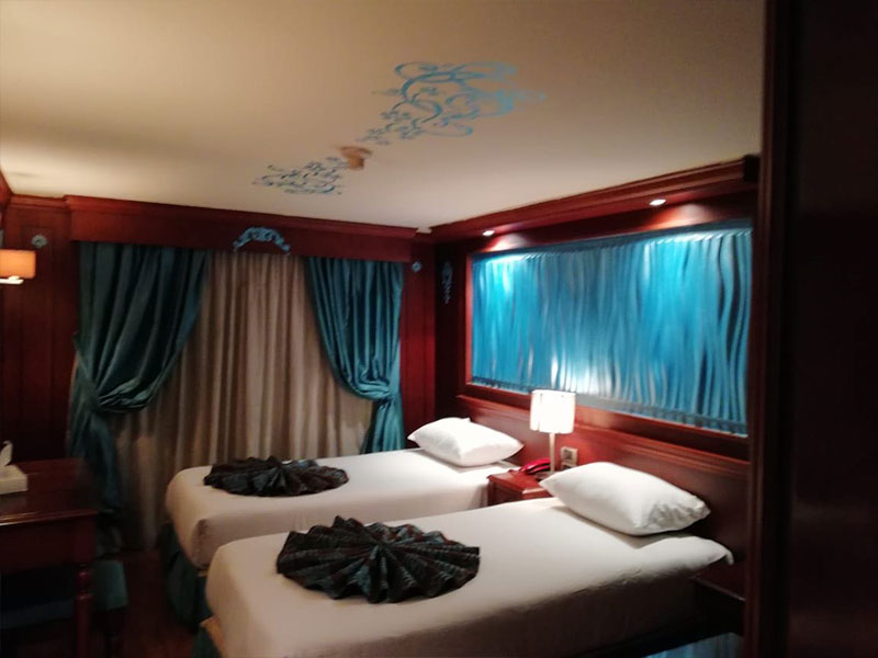 All the 57 standard cabins are reasonably sized and face out over the Nile. Decorated in traditional wood with attractive furnishings they all feature twin beds, air-conditioning, en-suite facilities, hairdryer, mini-fridge, safety deposit box and satellite LCD TV.
